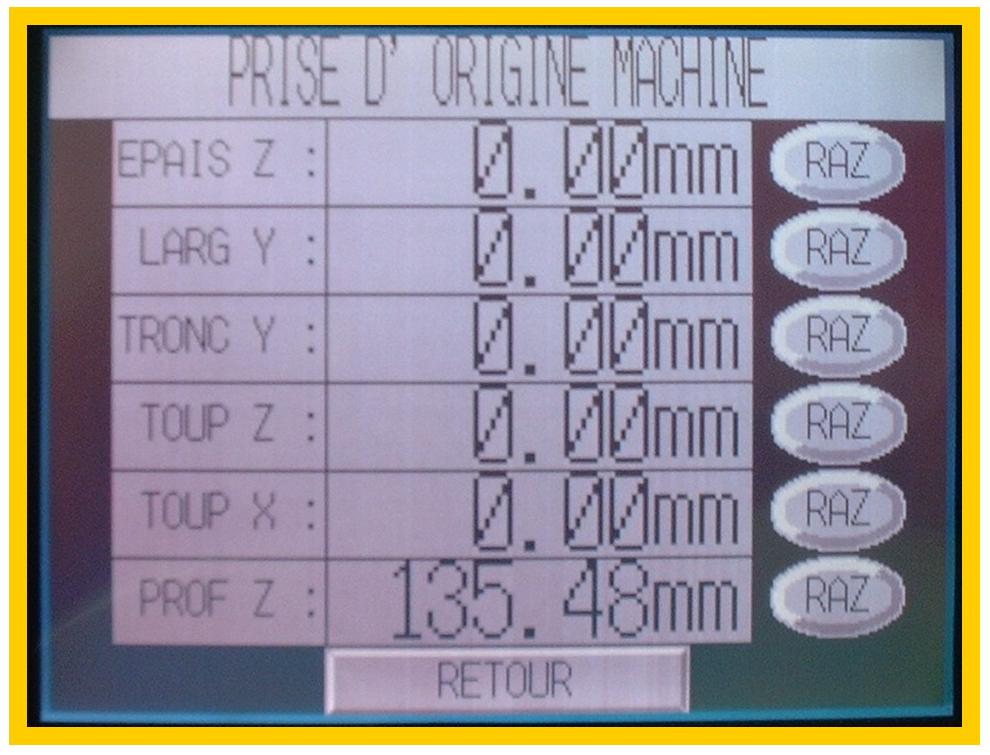- Aperçu de l'écran tactile de configuration des 6 axes. Possibilité d'introduire un décalage de prise d'origine.